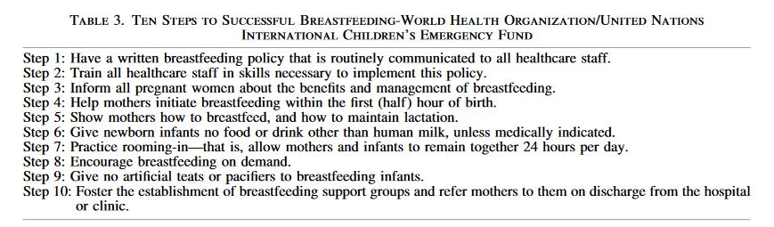 Bartick, M., Jegier, B., Green, B., Schwarz, E., Reinhold, A., & Stuebe, A. (2017). Disparities in Breastfeeding: Impact on Maternal and Child Health Outcomes and Costs. The Journal of Pediatrics., 181, 49-55.e6.