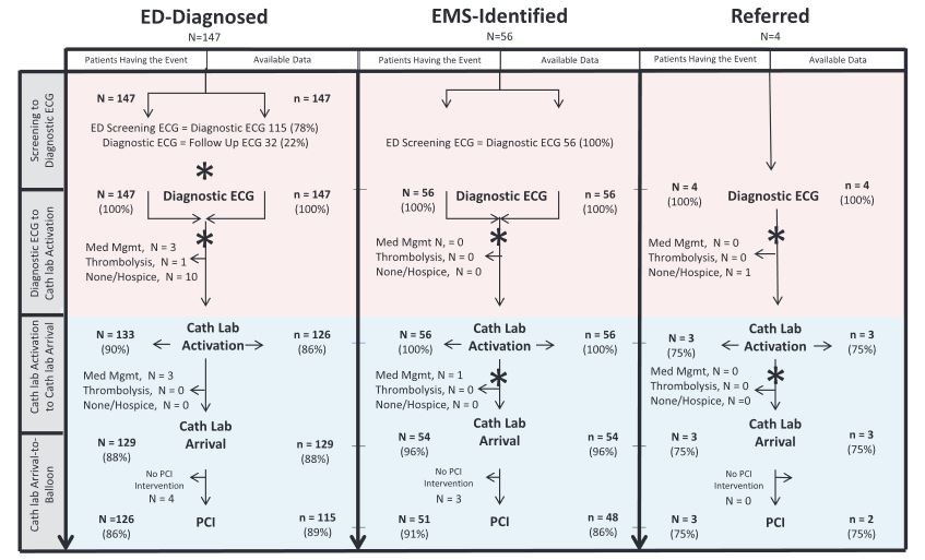 Yiadom, M., Olubowale, O., Jenkins, C., Miller, K., West, J., Vogus, T., . . . Liu, D. (n.d.). Understanding timely STEMI treatment performance: A 3-year retrospective cohort study using diagnosis-to-balloon-time and care subintervals. Journal of the American College of Emergency Physicians Open., 2(1), E12379