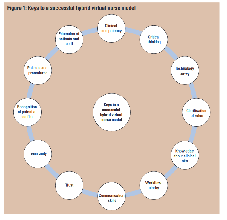 | A hybrid virtual nurse model.(includes abstract) Russell, Mary Beth Nursing Management, Feb2023; 54(2): 42-49. 8p. (Article – pictorial, research, systematic review, tables/charts) ISSN: 0744-6314 |