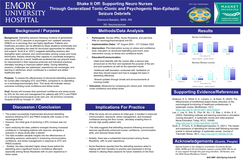Through Generalized Tonic-Clonic and Psychogenic Non-Epileptic Seizure Debriefs [Emory Healthcare Nurse Residency] Emory University Hospital, Atlanta GA