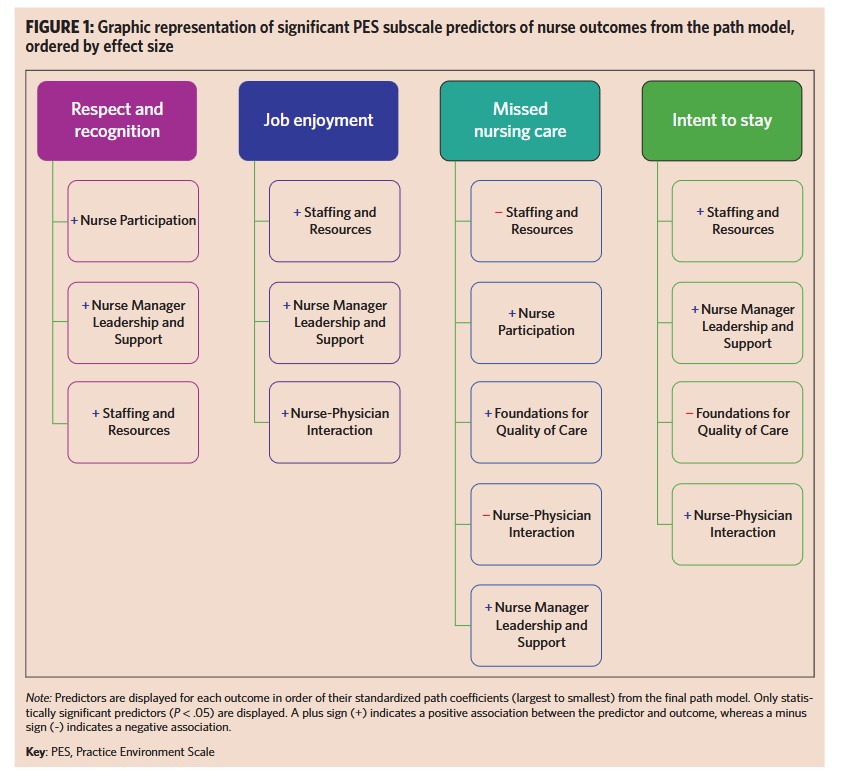 “Based on our analysis, the primary drivers of nurse outcomes were staffing and resource adequacy and nurse manager leadership and support. Nurse-physician interaction and nurse participation in hospital affairs were secondary drivers of nurse outcomes. Interestingly, foundations for quality of care demonstrated unexpected significance; thus, it’s also of importance as a driver. Therefore, to enhance nursing and patient outcomes, nurse managers need to engage in strategies that maximizes each subscale, given the subscale’s